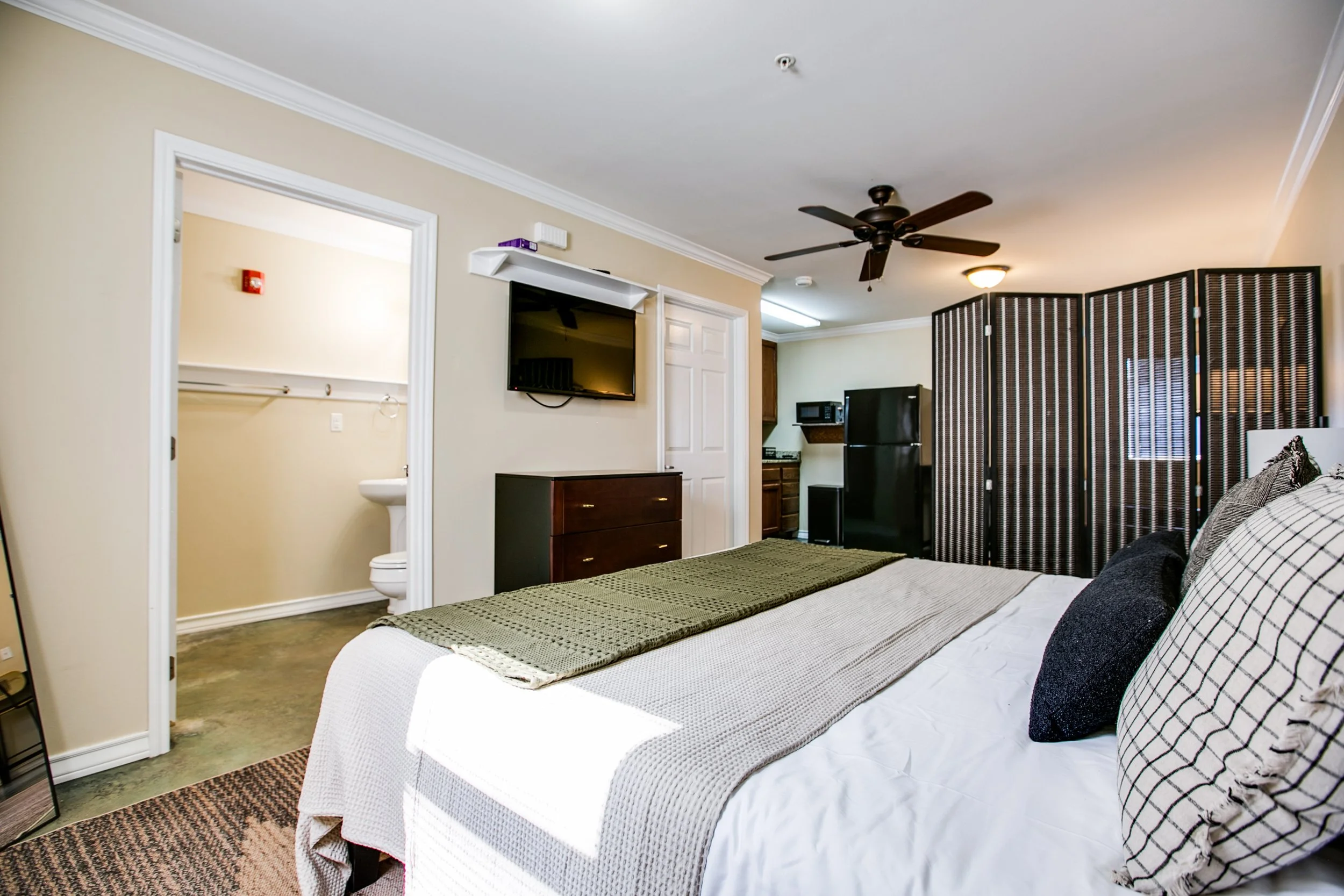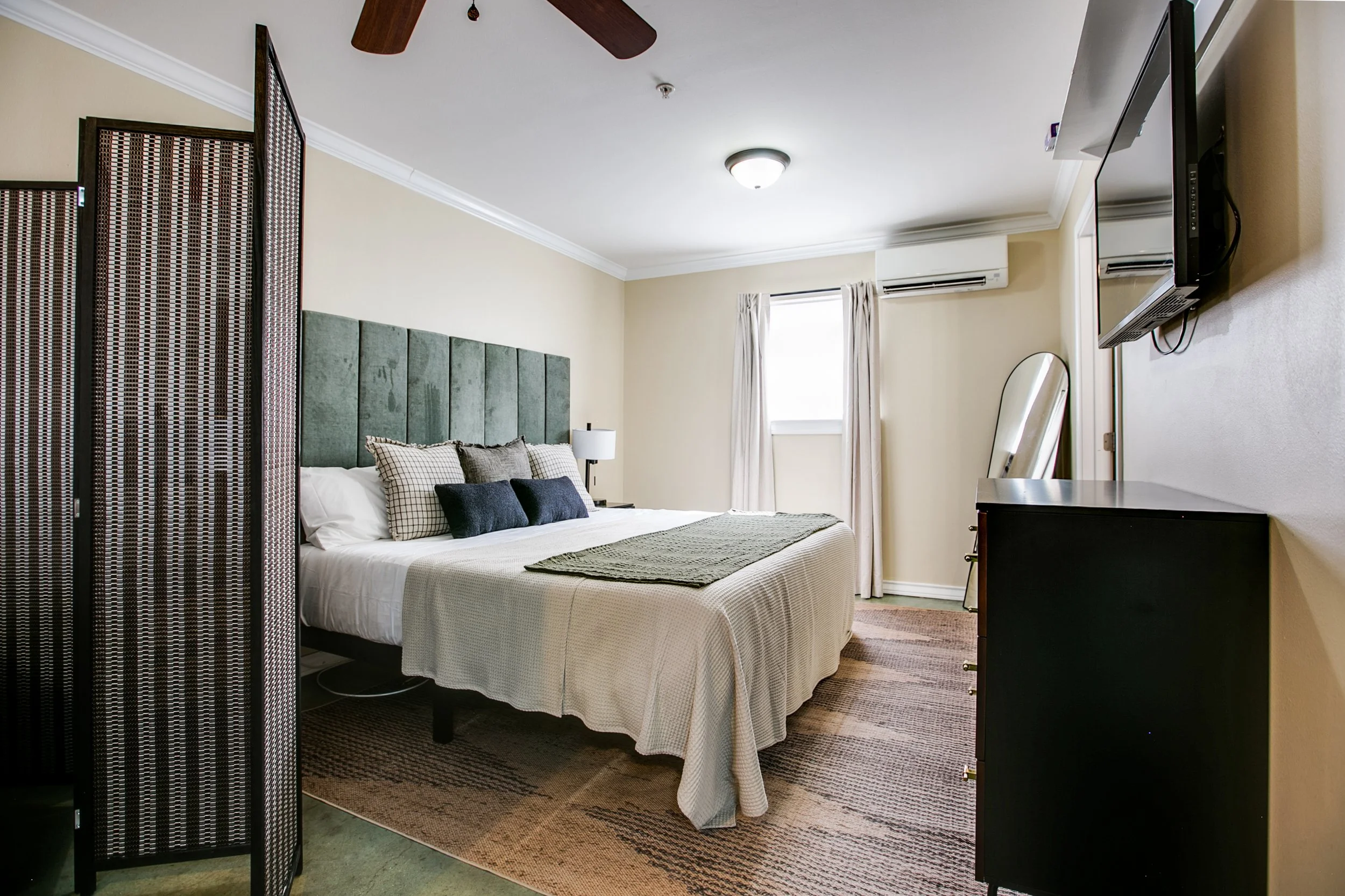 The bathroom includes all the essentials, from soft towels and washcloths to starter toiletries and a hairdryer. With practical features and clean, modern design, it’s a space that’s simple, functional, and ready for your daily routine.