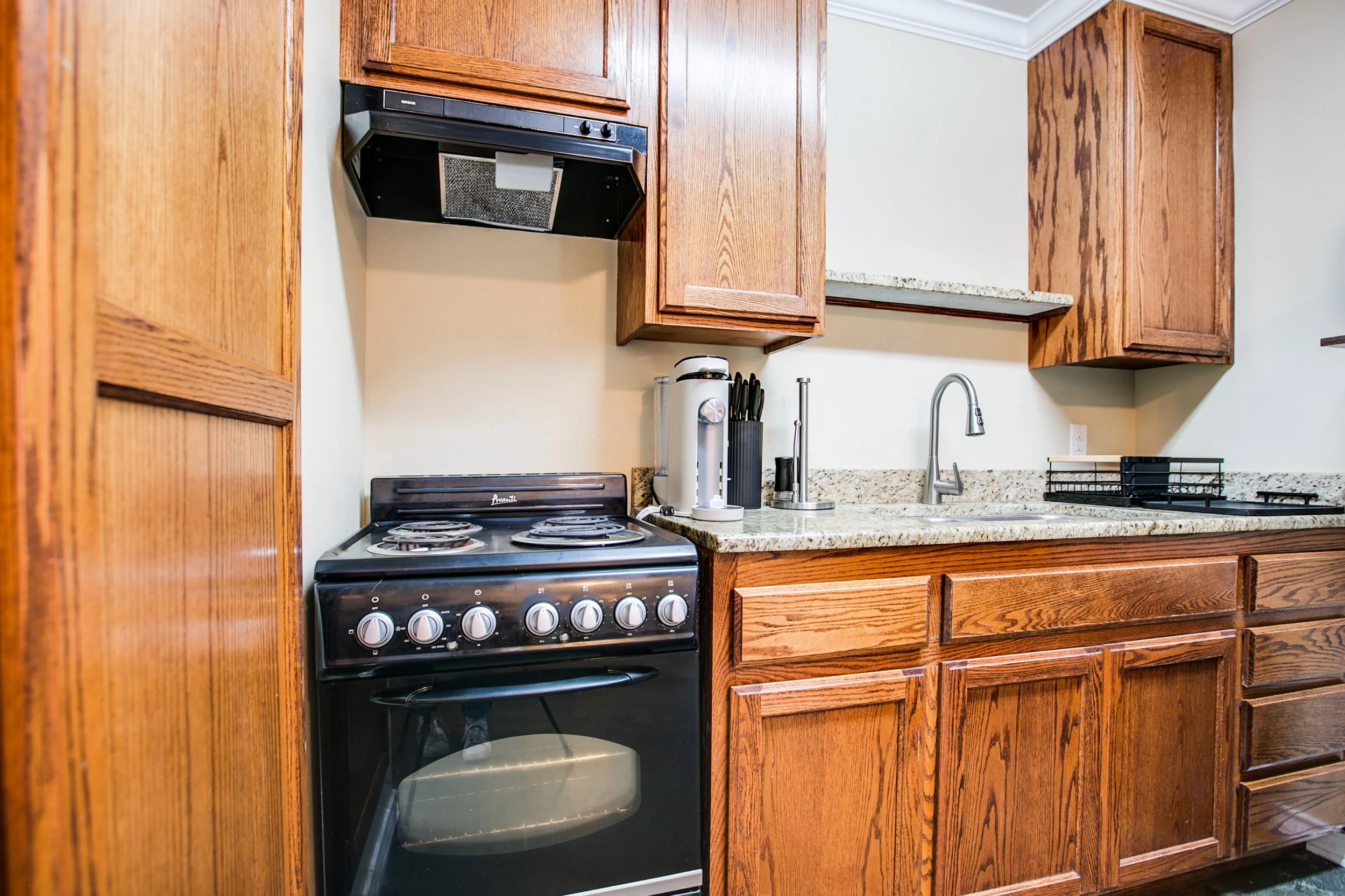 Our kitchens are practically designed for the travelling professional. Each unit comes with cookware, utensils, dishes, glasses, and small appliances like a coffee maker, toaster, and microwave.